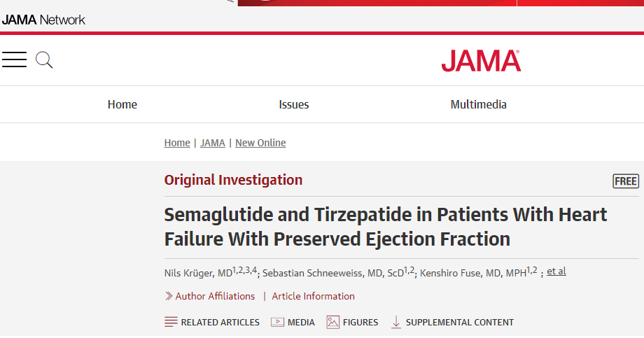 近日,慕尼黑工业大学等机构的研究团队在《JAMA》发表重磅研究,给这类患者带来了突破性好消息:常用于减肥的药物司美格鲁肽(semaglutide) 和替西帕肽(tirzepatide) ,不仅能帮人减重,还能大幅降低射血分数保留的心力衰竭(HFpEF)患者的住院或死亡风险,近 10 万名患者的医疗数据更是为这一结论提供了迄今为止最有力的证据支持。
